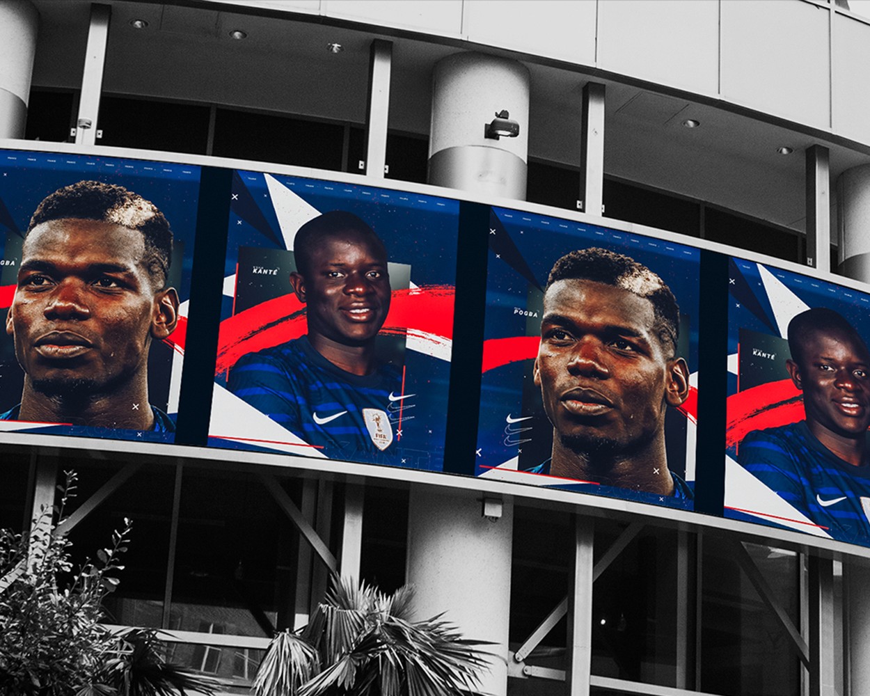 The project involved extensive research into France’s football heritage, national symbols, and the team’s key players. The aim was to create an exhibition-style digital composition that both highlighted the French squad and embraced the cultural significance of the nation.