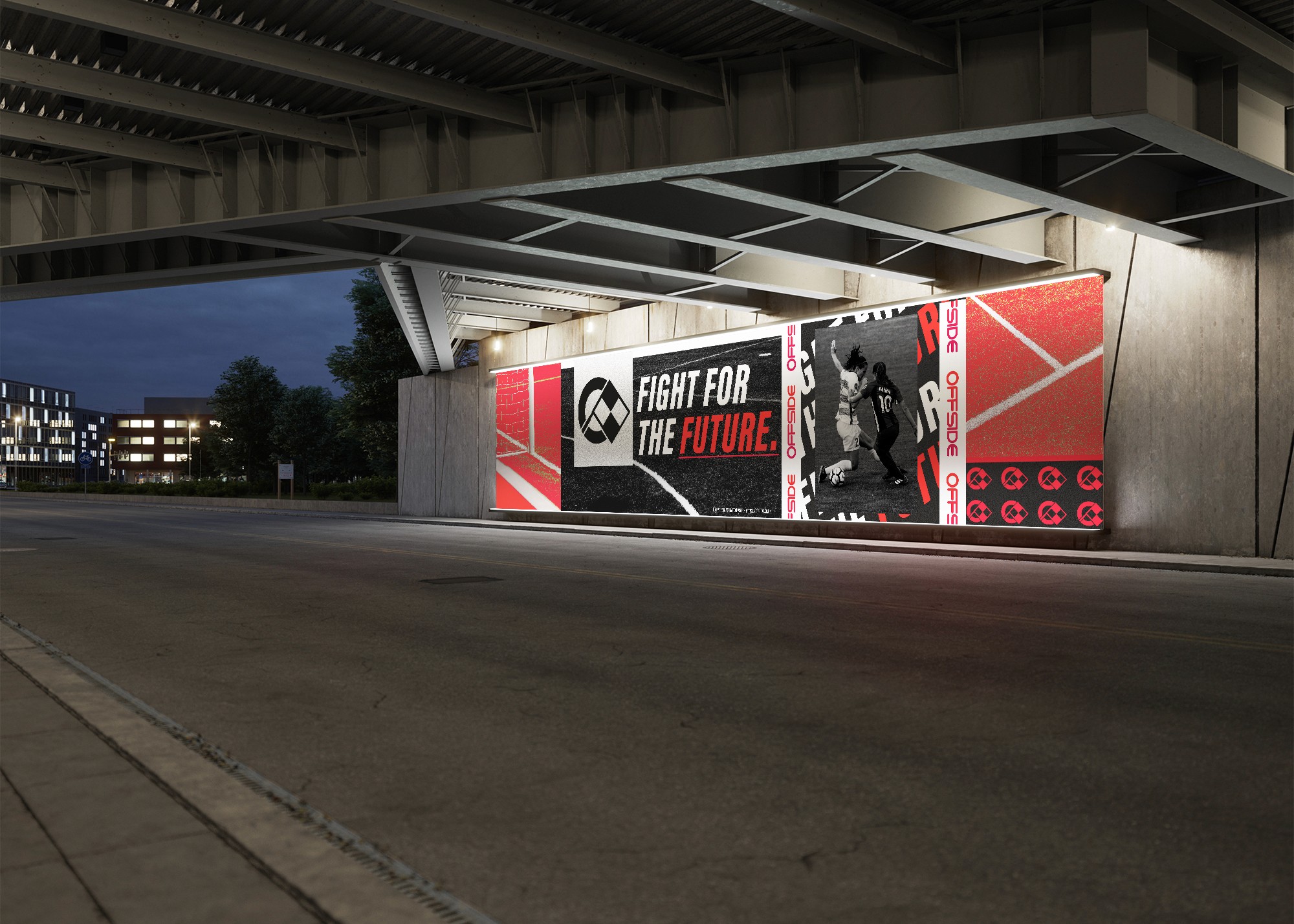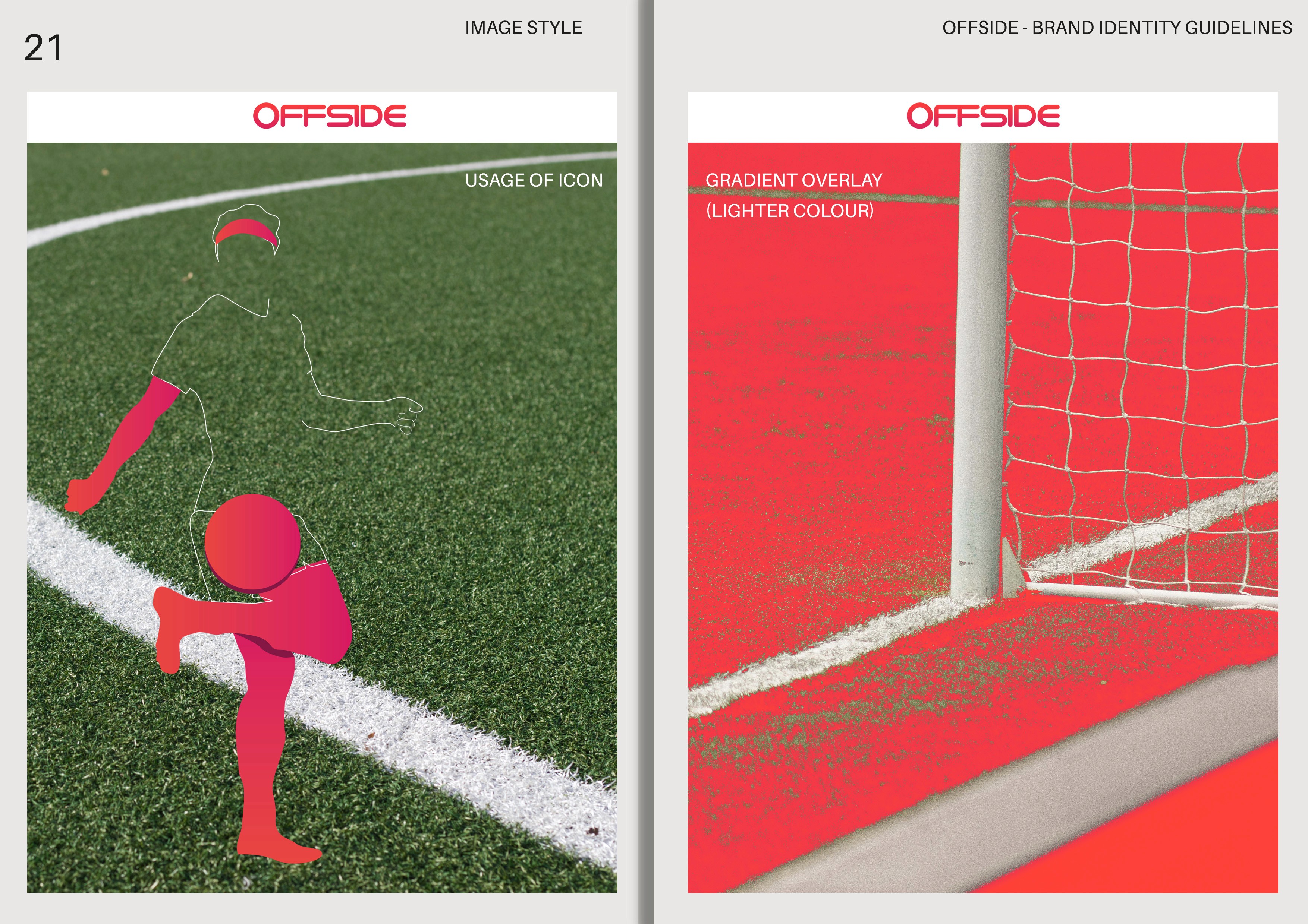 A fluid, modern logo was designed, inspired by the football term "Offside", with smooth curves representing progression in the women’s game. A vibrant gradient colour scheme was chosen to match the optimistic tone of the tournament.