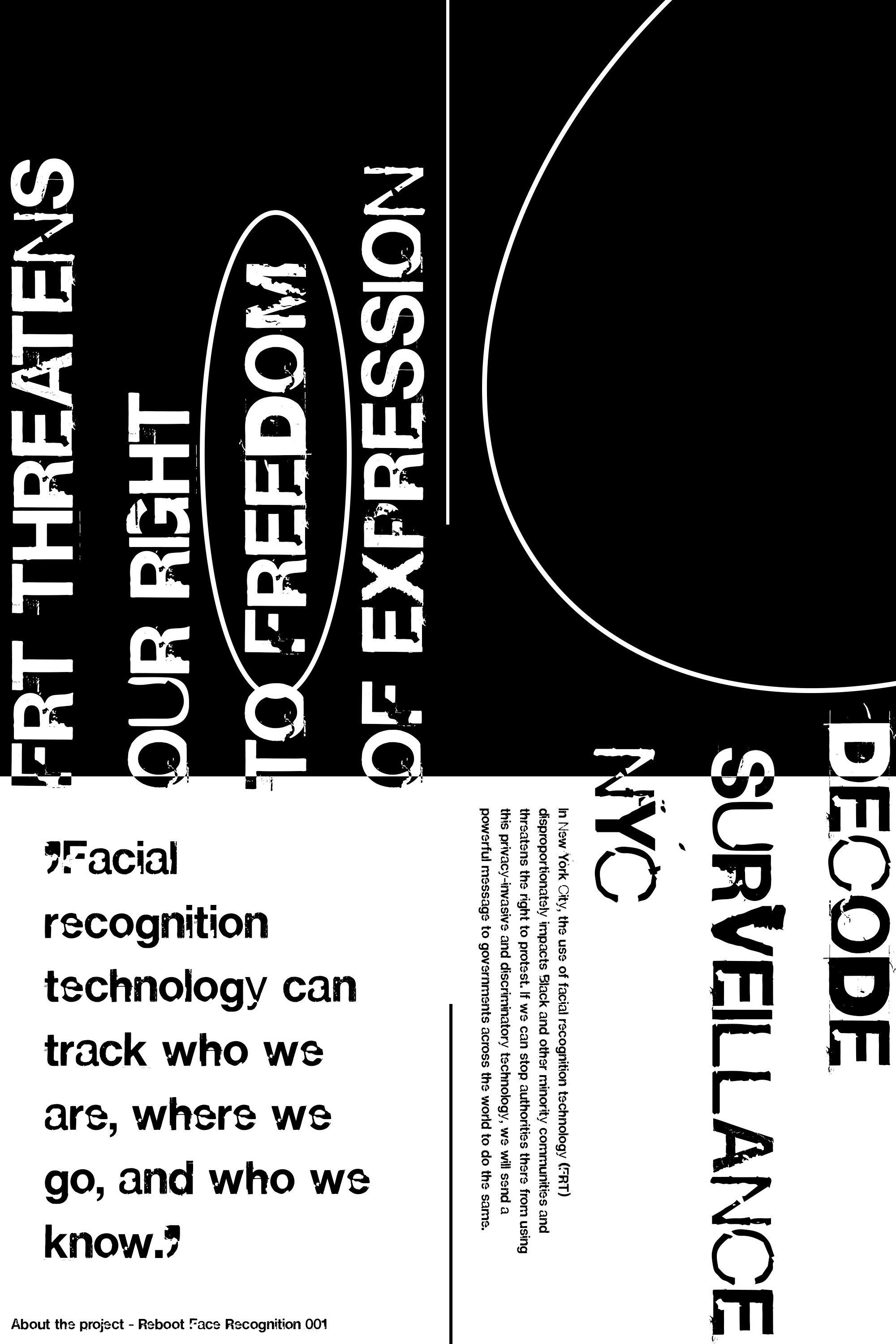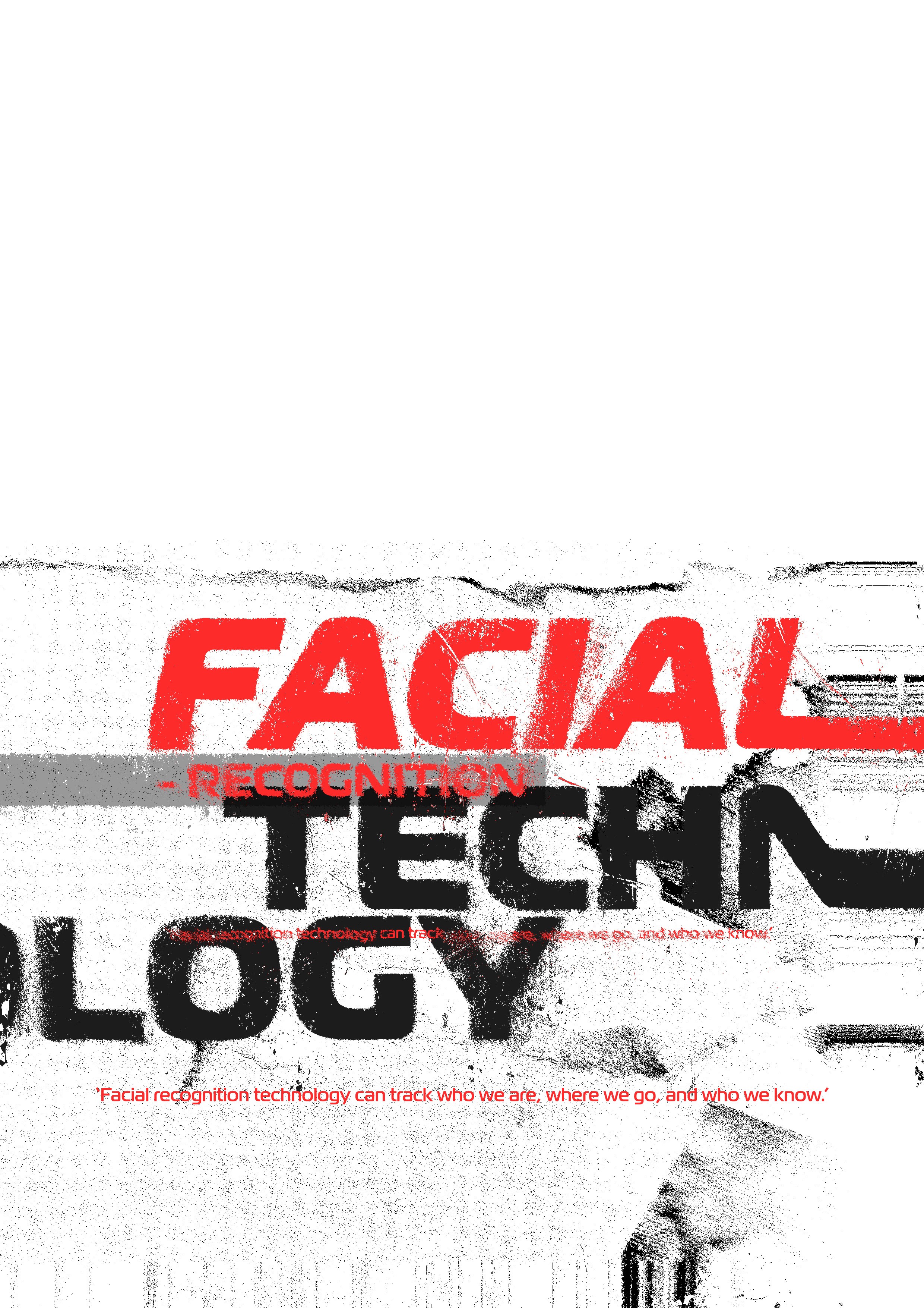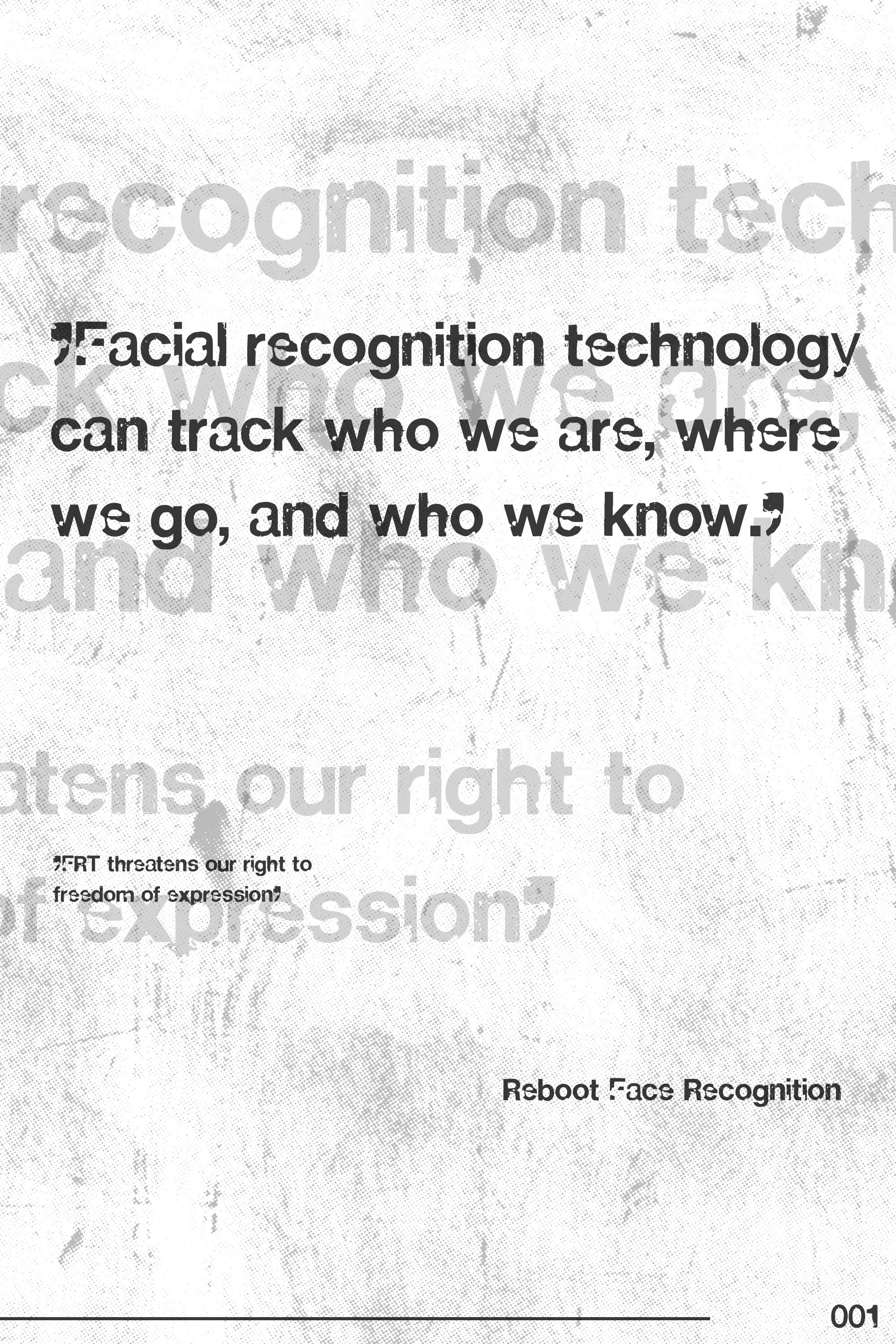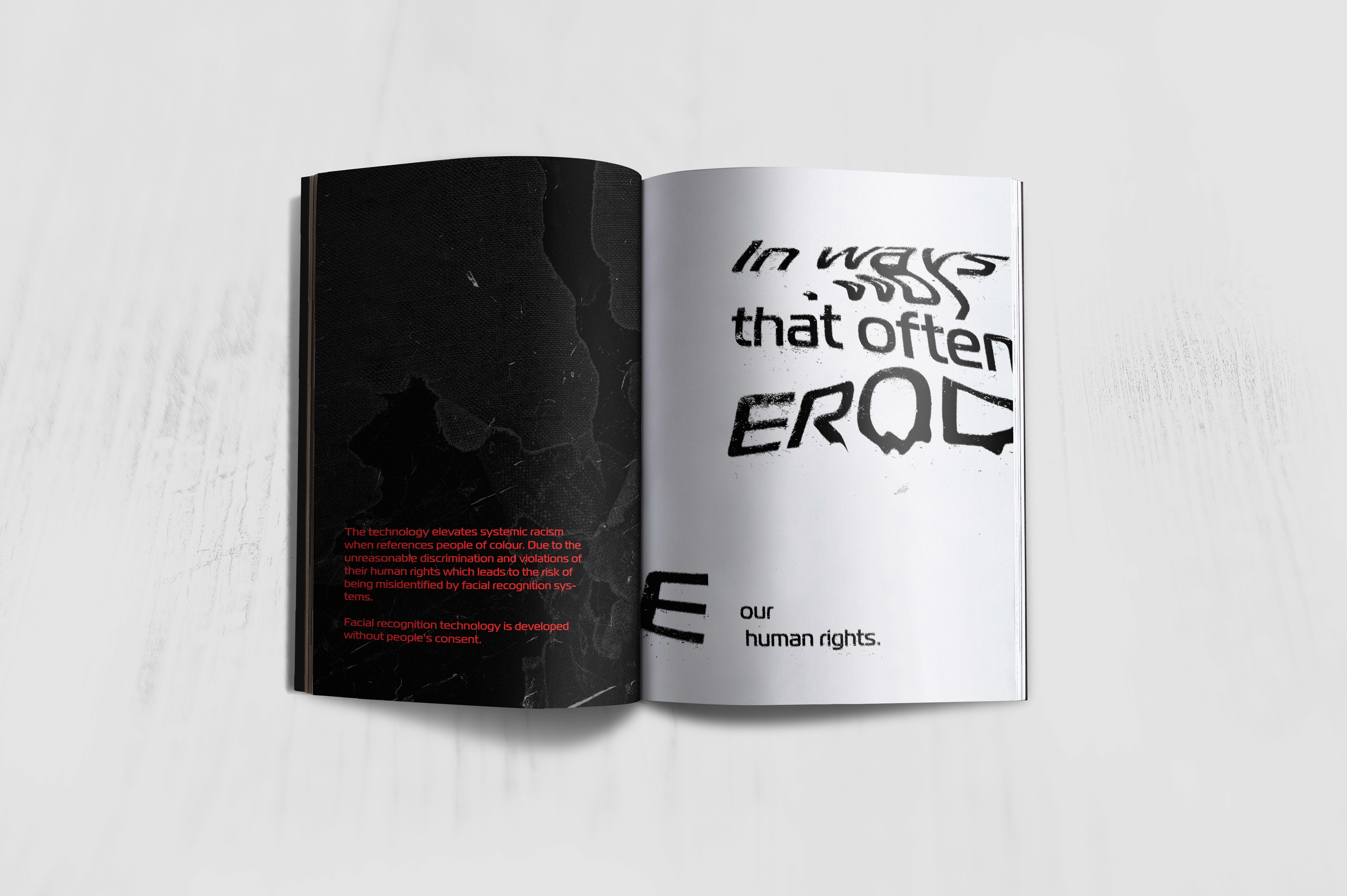Research focused on the inaccuracies and racial biases of facial recognition software, leading to a design strategy that highlighted distortion and data corruption as visual metaphors.